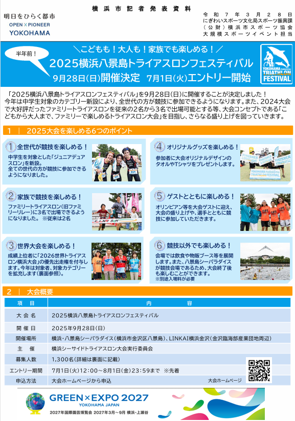 横浜市金沢区の魅力である海と緑に恵まれた環境を身近に感じられる「横浜八景島トライアスロンフェスティバル」を参加者の皆さんは満喫してました。